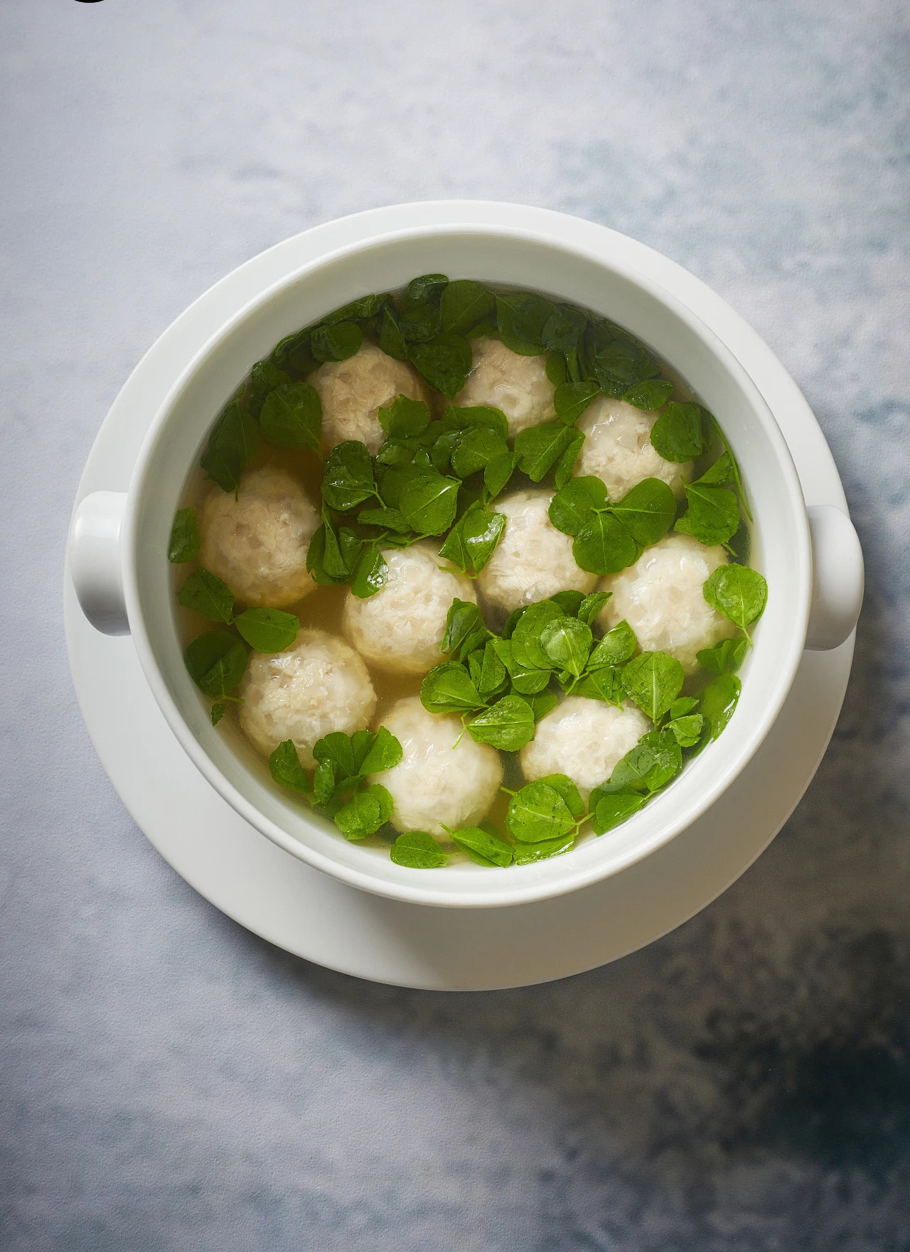 To portray the ultimate freshness of Three Shrimp and seasonal delicacies showcases a scroll of an 18-course menu, among which many sources of inspirations are born out of Suzhou culinary traditions. The menu starts off with the in-season water shield that is settled with jelly made from chicken broth, shrimp roe and brain, seemingly like a placid lake on top.