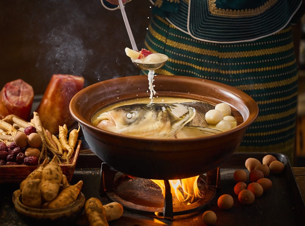TianMa fish-head stew is naturally nourishing, but at Hong 0871 it serves as just a broth base. Seasonal roots and herbs—dong quai, mountain yam, codonopsis root, Angelica dahurica root, Chuanxiong, and small yellow ginger—infuse the broth with layered aromas. Hand-rolled fish balls and black tofu are stirred in, simmered over a gentle flame, creating a sense of warmth in a single spoonful.