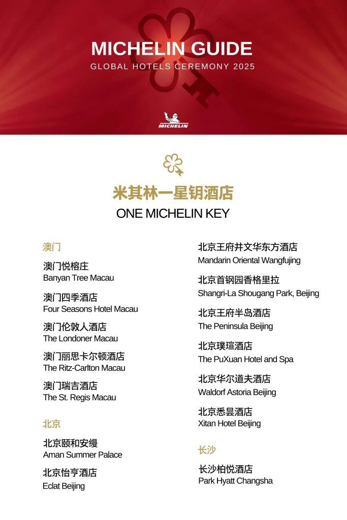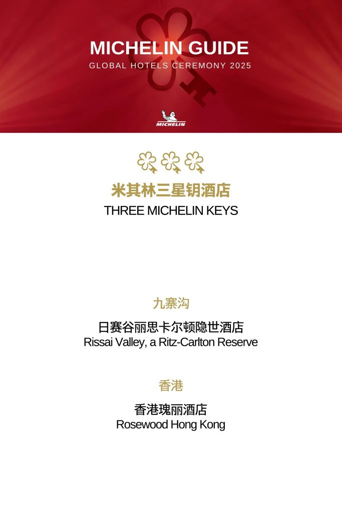 Greater China region made a remarkable debut this year with 64 hotels earning MICHELIN Keys – 2 Three-Key, 13 Two-Key, and 49 One-Key distinctions, marking China’s growing presence on the global luxury map.